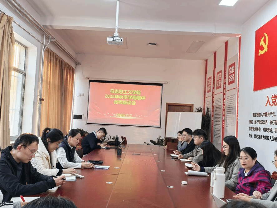 为扎实做好期中教学检查工作,持续提升思政课教学质量,11月3日,马克思主义学院于102会议室召开2025年秋季学期期中教师座谈会。会议由副院长尹健主持,学院全体教师参加。