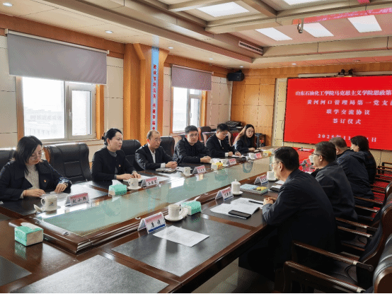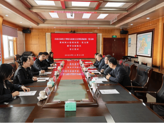 为深入贯彻落实黄河流域生态保护和高质量发展重大国家战略,推动理论教学与实践探索深度融合,构建资源共享、优势互补的党建工作格局,2025年11月11日,山东石油化工学院马克思主义学院思政第一党支部与黄河河口管理局第一党支部联学交流协议签订仪式在黄河河口管理局十楼会议室成功举行。